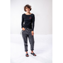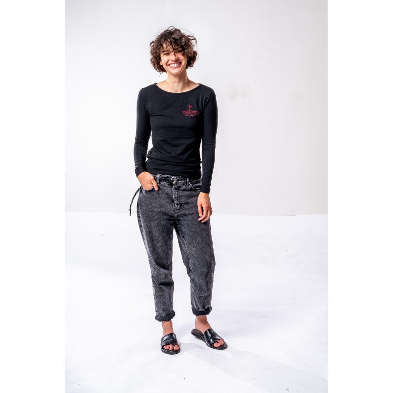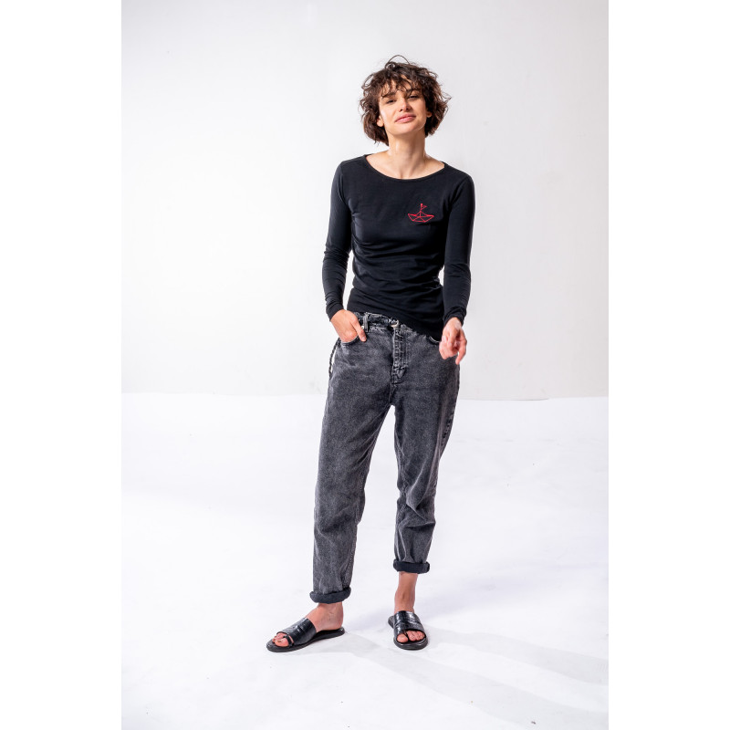 Dámské tričko s dlouhým rukávem, navržené pro každodenní pohodlí i elegantní vzhled. Vyrobeno z kvalitního hladkého a jemného materiálu s příměsí elastanu, díky kterému je příjemně pružné a krásně se přizpůsobí postavě. Kulatý výstřih je zakončený pevným lemováním a celé tričko je zpracované s důrazem na detail – dvojité šití zajišťuje delší životnost a odolnost i při častém nošení a praní.