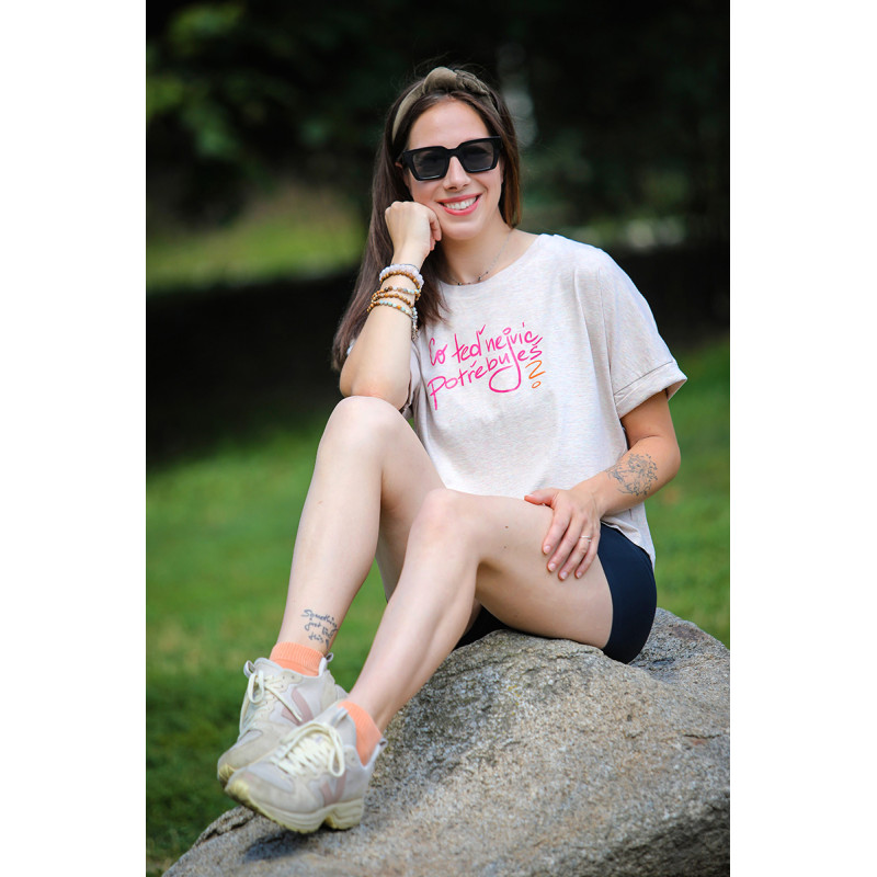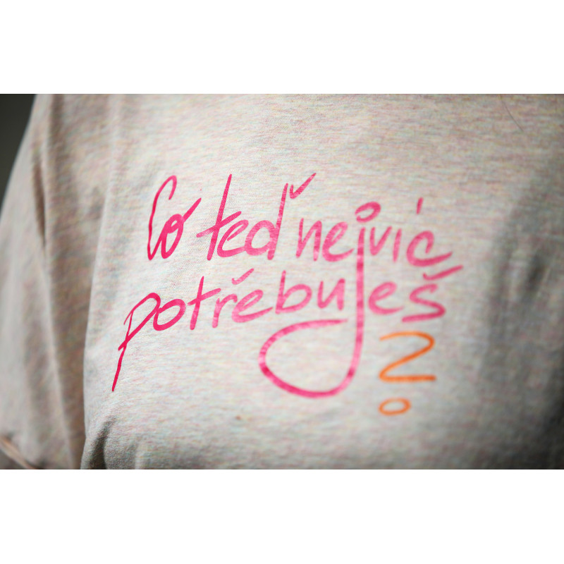 Tyto důležité otázky stály u vzniku jejího motivu. Její kolekce s názvem POTŘEBY poukazují na nutnost se občas zastavit a uvědomit si, co vlastně nejvíce potřebujeme. Zároveň je to připomínka, že důležité je nejen to, co vyžadují druzí, ale to, co potřebujeme my sami. Zkuste se sami sebe zeptat? Odpověď Vás možná překvapí. Kateřina říká: „Občas může být těžké na otázku Co teď nejvíc potřebuješ? odpovědět, ale myslím, že když ji skrze nápis na oblečení budu vídat častěji, naučím se i na tu otázku sama sobě lépe odpovídat a pak se podle toho i zachovat.“